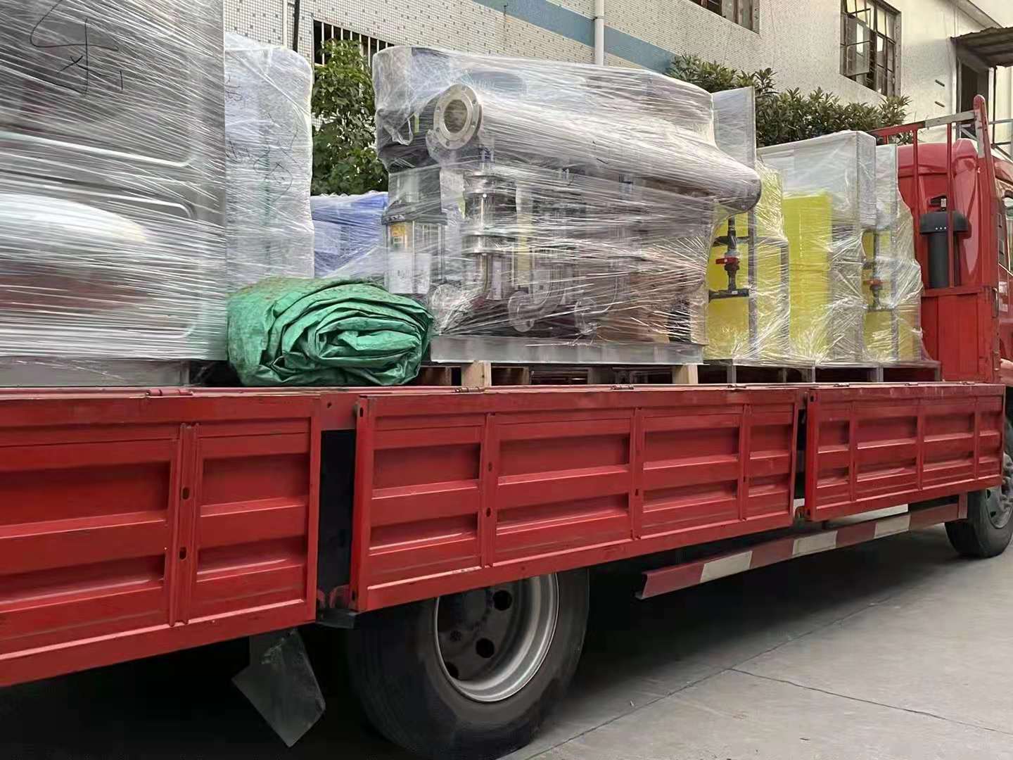 湖州德清项目:一批智能加药装置及变频供水设备及智能砂滤装置和不绣钢加热水箱装车发货完成,上海奥栋承诺必达!