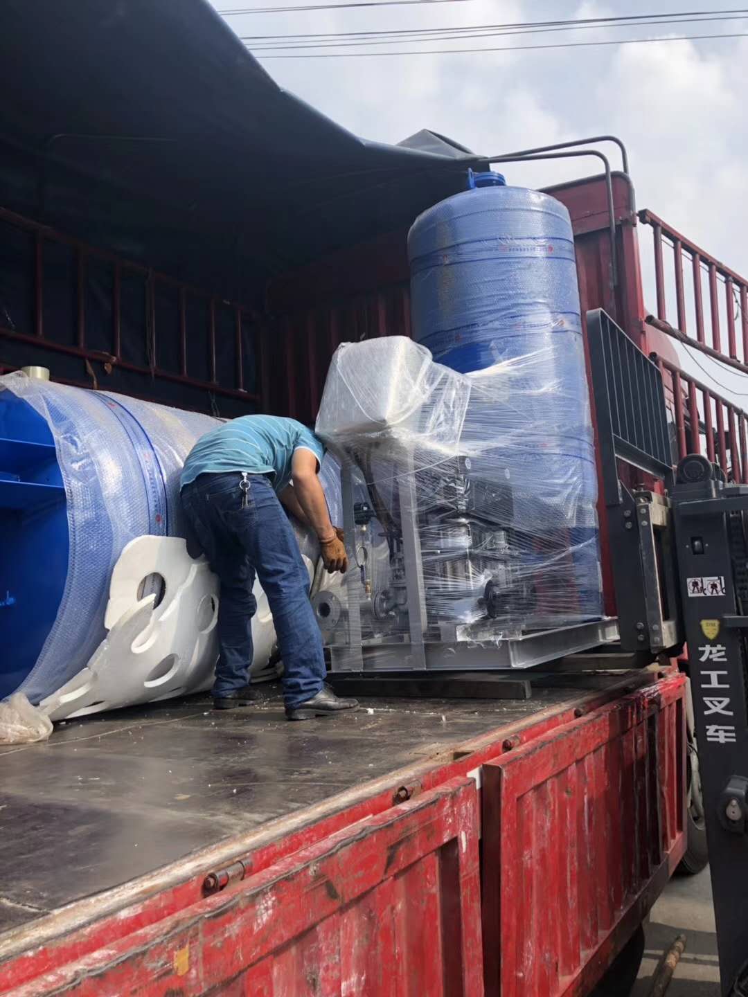 浙江海宁正泰三期项目:为了赶工期急客户所急,一批定压补水装置及水处理设备安排专车送货,同事们辛苦了!